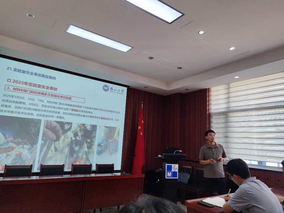 王鹏围绕“实验室安全与资产管理”作专题通报。他通过视频与图片结合的方式,复盘余杭氢氟酸中毒事件、电热水龙头失火等典型案例,指出了当前潜在的部分安全问题,并明确下半年安全工作的重点。在资产管理方面,他强调要落实资产盘点常态化,严格执行仪器设备损坏丢失赔偿、报废回收、转移调拨等规定,加强采购履约验收与暂付款清理,确保资产账实相符、高效利用。